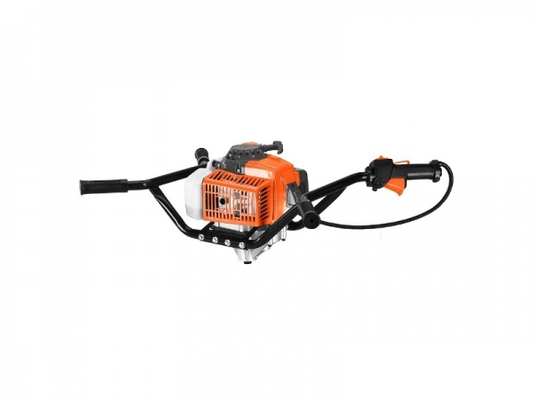 Бензиновий мотобур Sturm ea1564 являє собою моторизований механічний пристрій для буріння отворів різного діаметру і глибини в грунті під посадку дерев, установку стовпів, опор огорож, напрямних труб при будівництві парканів. За своєю конструкцією виріб відноситься до простих класичних механізмів. Обертання бура (шнека) здійснюється через редуктор надійним одноциліндровим двотактним двигуном внутрішнього згоряння з повітряним охолодженням. Економічний двигун об'ємом 63,3 см³ і потужністю 2.8 л. с. працює на суміші бензину АІ-92 з маслом для двотактних двигунів. Її готують безпосередньо перед застосуванням і заливають в бак 1.5 л. Запускається двигун ручним стартером. Обороти двигуна регулюються важелем дросельної заслінки (ручка газу), розташованої на рукоятці оператора. Максимальна швидкість обертання шнека 300 об/хв. зручна ергономічна рукоятка оператора дозволяє виконувати роботу удвох. Дана модель шнеком не укомплектована. Вага мотобура 10 & nbsp;кг.& nbsp; швидке під'єднання і безключова фіксація шнека на валу редуктора. Простота пристрою бензинового мотобура МБ-1530А роблять його надійним і абсолютно невибагливим в обслуговуванні помічником. |